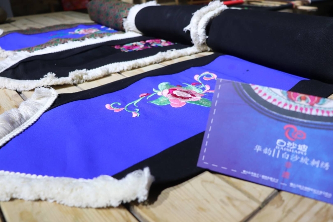 白沙坡的手工刺绣做工考究、图案精美,刺绣技法以“平、齐、细、密、匀、顺、和、光”为特点,绣品以均匀熨帖、丝缕分明而著称。