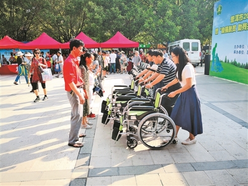 压题图为普洱市相关部门向残疾人发放轮椅等辅助器具。(云南日报 记者郎晶晶)