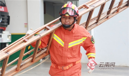 工作中的云南蒙自消防员许建旗。蒙自市消防中队供图