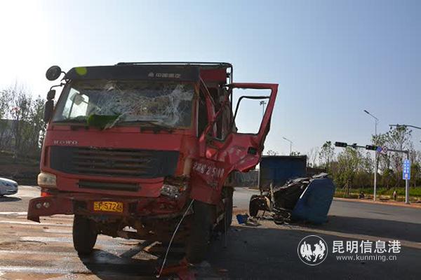 6686体育讯 记者合宇聪 5月19日上午,昆明南收费站旁发生一起交通事故,一辆小货车在经过十字路口时与一辆中型货车相撞,中型货车驾驶员被困车内。高新消防大队接报后迅速前往救援,将被困人员成功救出。