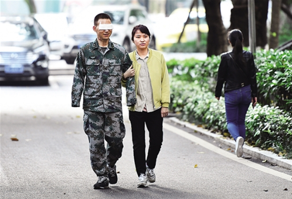 在陆军军医大学,杜富国与妻子王静一起散步。