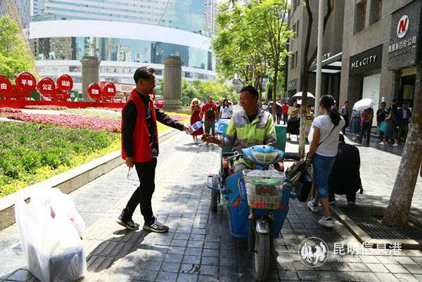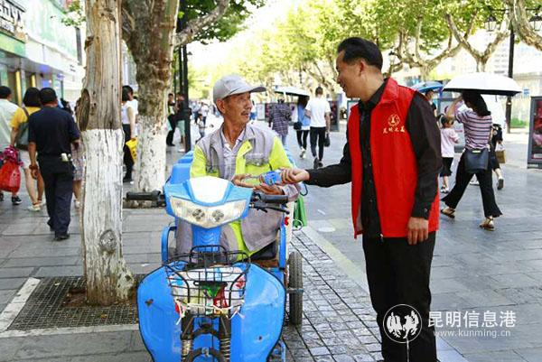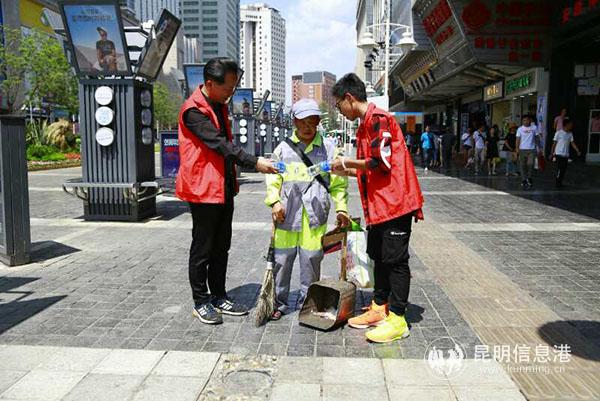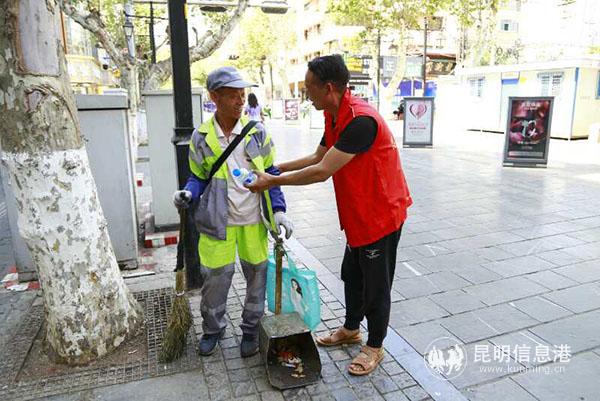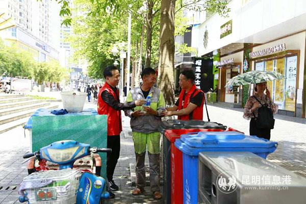 昆明近段时间一直高温,环卫工人为了城市美容,一直在烈日下工作。为了表达对他们的敬意,“昆明之美”决定送上一瓶水。