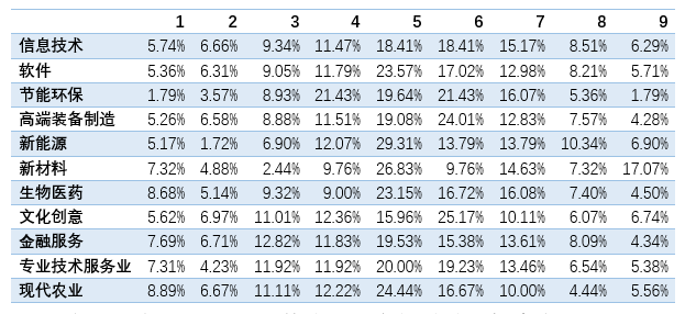 分行业来看,新材料和新能源行业企业对政策支持力度评价很好(打分为7-9)的企业比重分别为39.02%和31.03%,略高于其他行业。现代农业和文化创业行业企业对政策支持力度评价(打分为7-9)的企业比重分别为20.00%和22.92%,略差于其他行业。