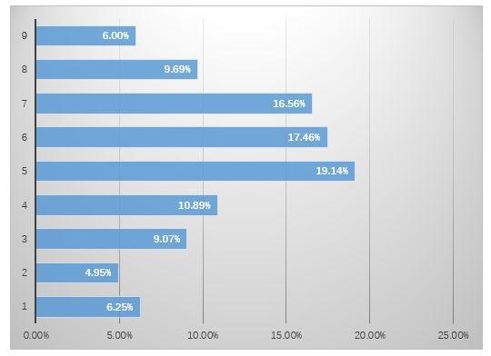 在关于创业政策支持效果的调查中,企业对税收减免政策的评价总体较好。数据显示,评价6分及以上的创业者占比高达66.1%,可见当前税收减免政策的总体效果企业较为认可。14.2%的创业者对当前的税收减免政策非常满意,给出了满分9分的评价。受调查创业者中,评价7分的创业者占比最高,为18.95%。