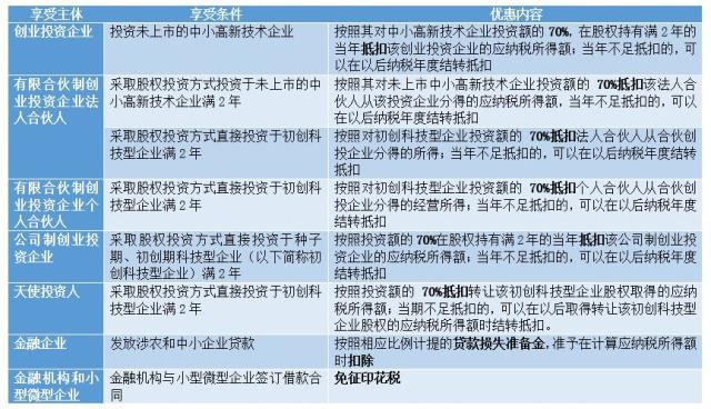 ↑表4 创投企业、金融机构税收优惠政策