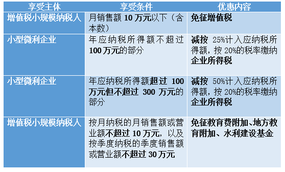 2019年1月,为进一步减轻小微企业税收负担,财政部、国家税务总局出台了小微企业普惠性的税收减免政策,将增值税起征点由月销售额3万元提高到10万元。同时,大幅放宽了可享受企业所得税优惠的小型微利企业标准,同时加大了所得税优惠力度。