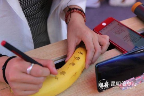 同时,九机还在终点处设置了香蕉供应站,且每一根香蕉都附有励志文案,在给跑者身体注入能量的同时,唤醒跑者的精神力量。除此之外,九机还贴心为终点等待的人准备了笔,现场即可定制“专属”助力香蕉。一位女孩在结束赛程后兴高采烈的在香蕉上写下:为梦想一路狂奔。