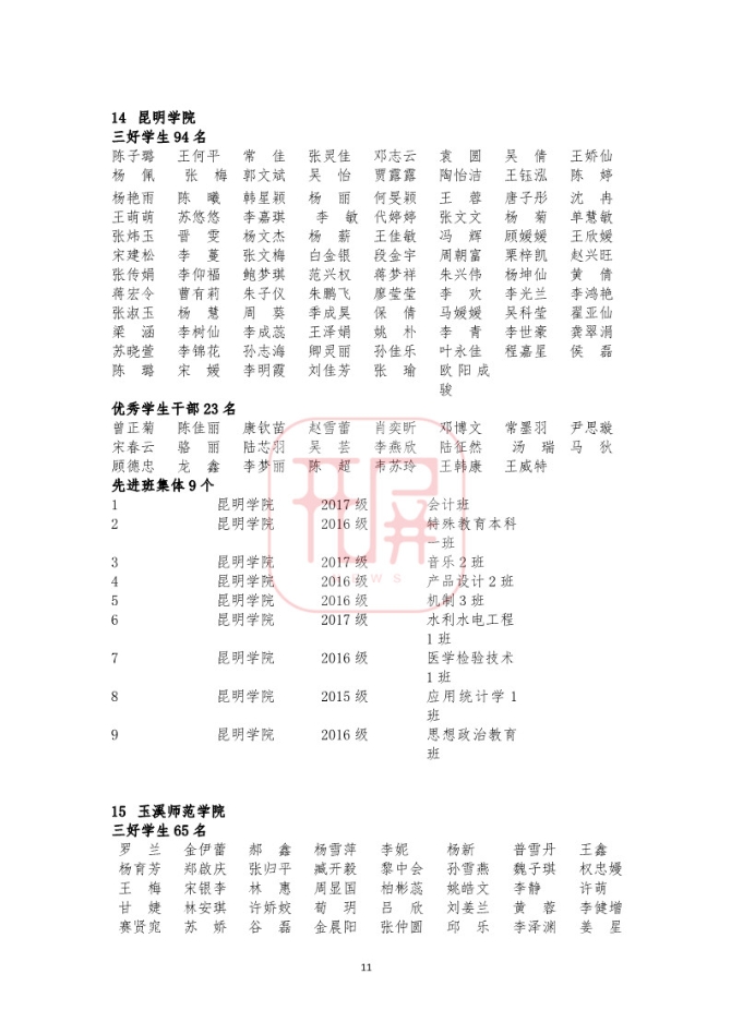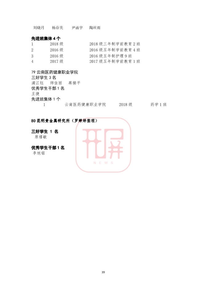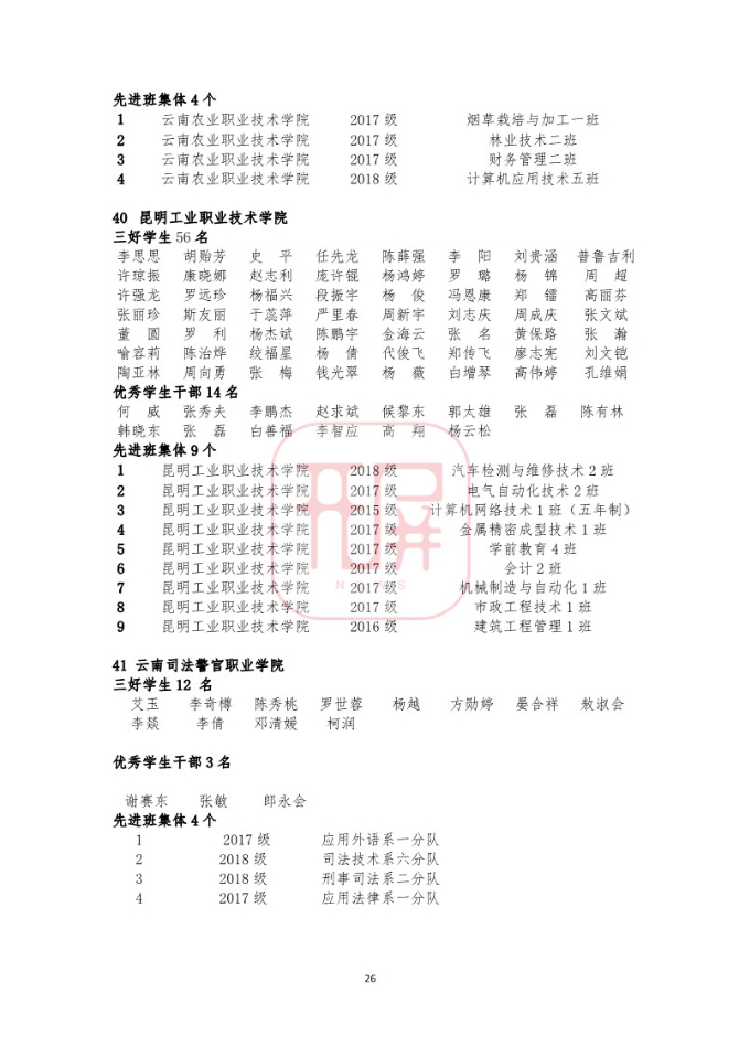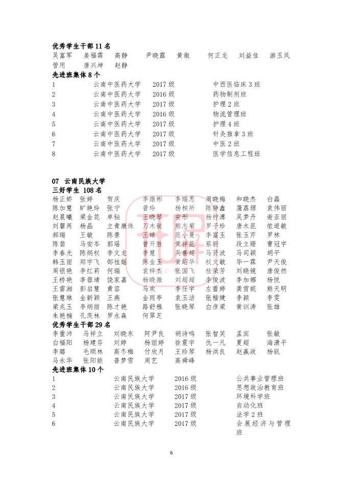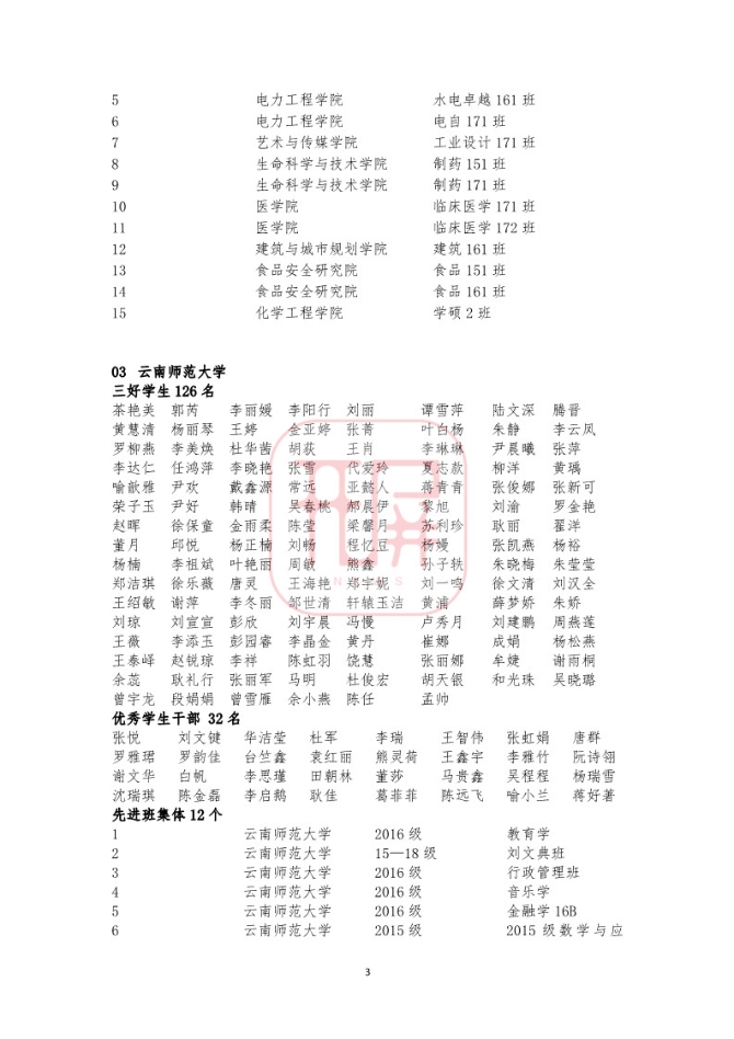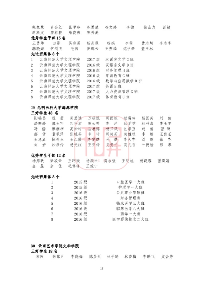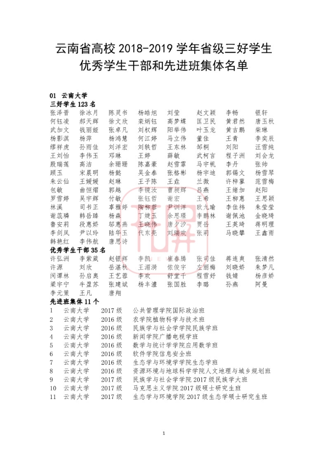 中共云南省委高校工委日前发布《关于2018~2019学年省级三好学生优秀学生干部和先进班集体名单的公示》,我省各所高校又有一批学生和班级榜上有名。
