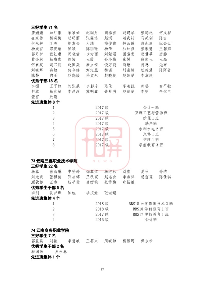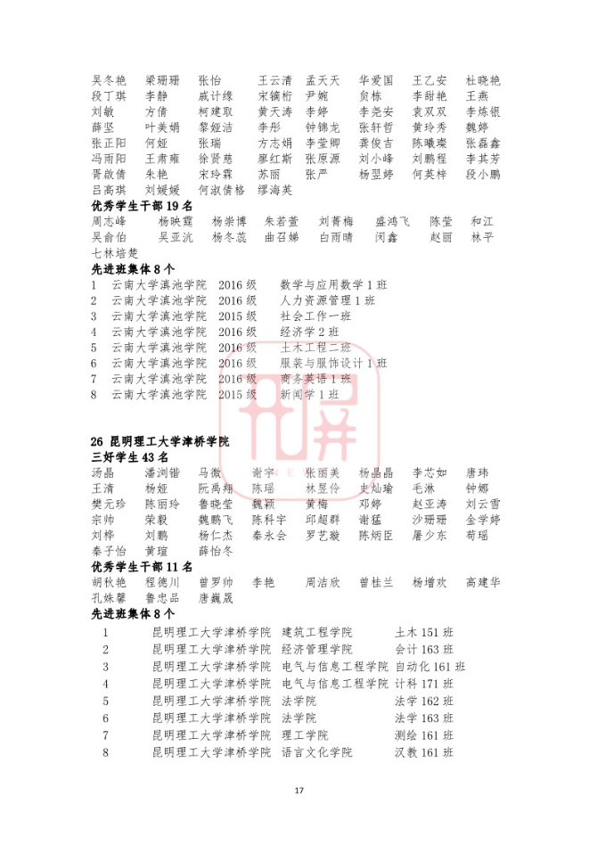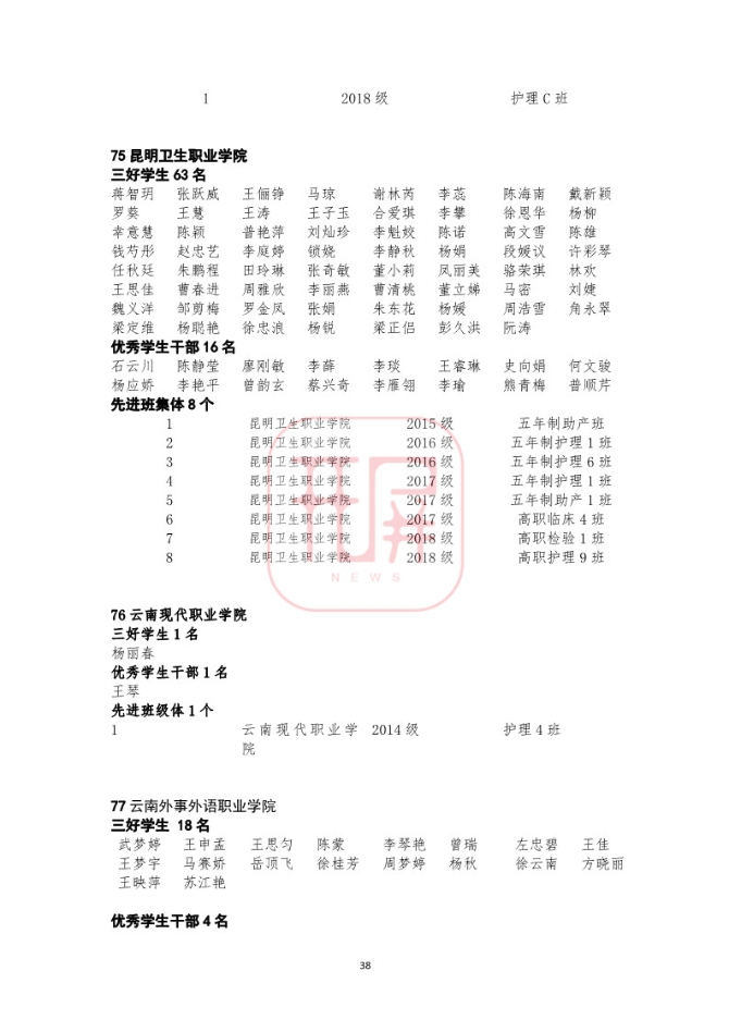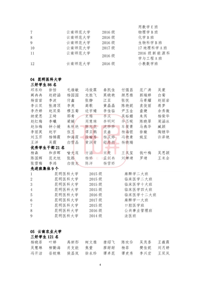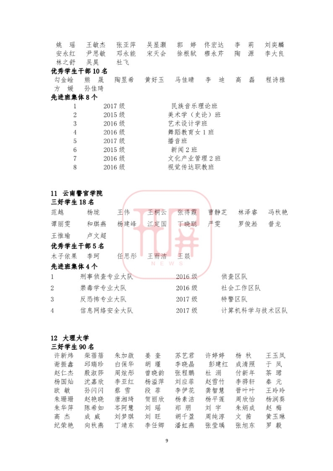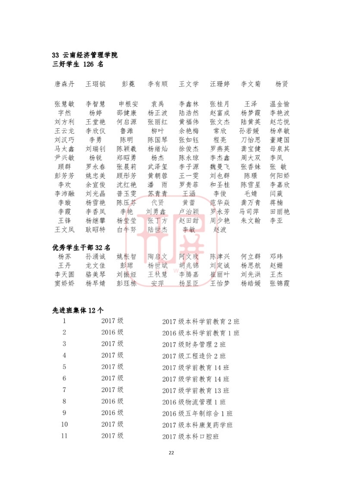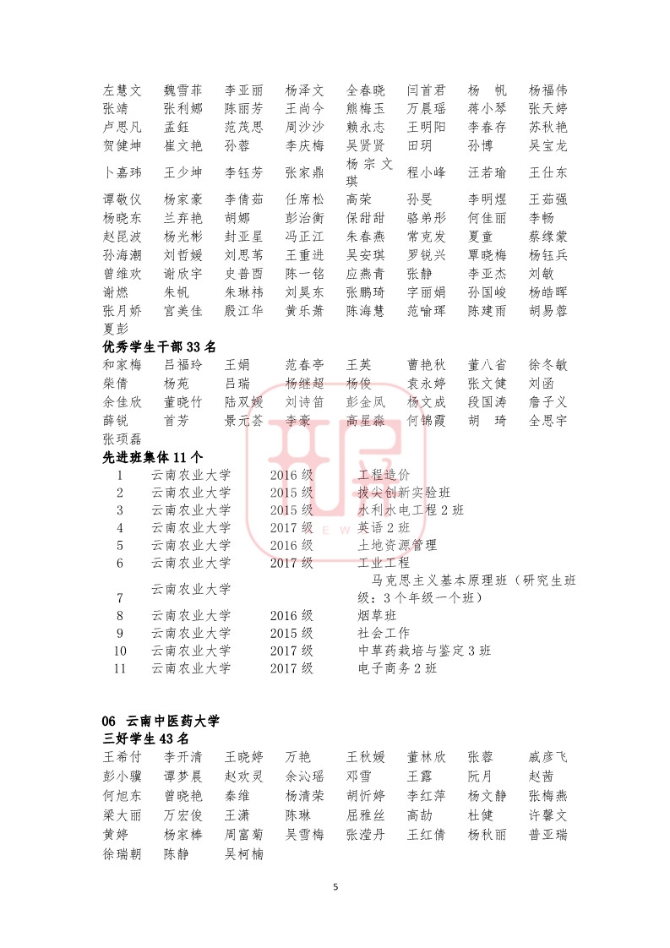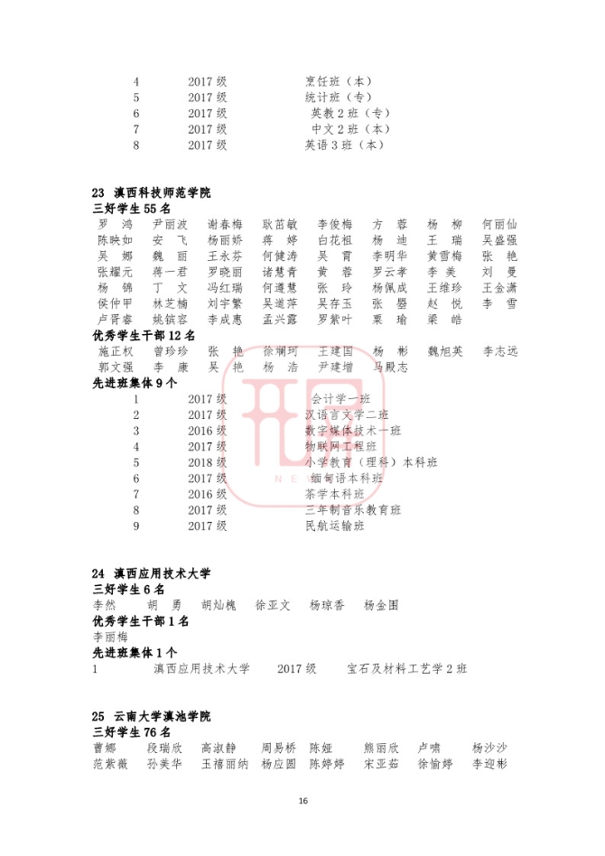 中共云南省委高校工委日前发布《关于2018~2019学年省级三好学生优秀学生干部和先进班集体名单的公示》,我省各所高校又有一批学生和班级榜上有名。