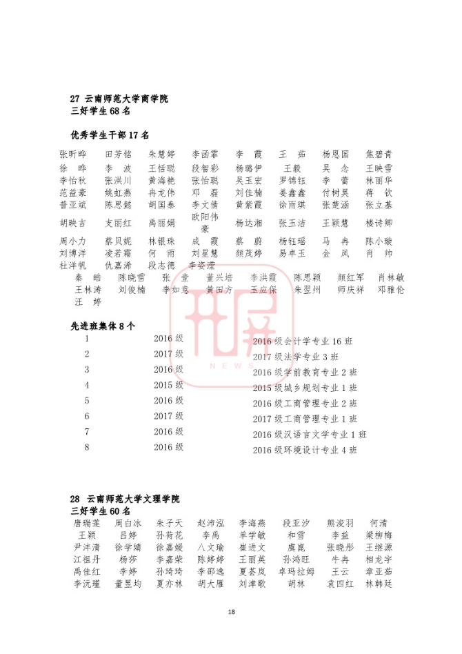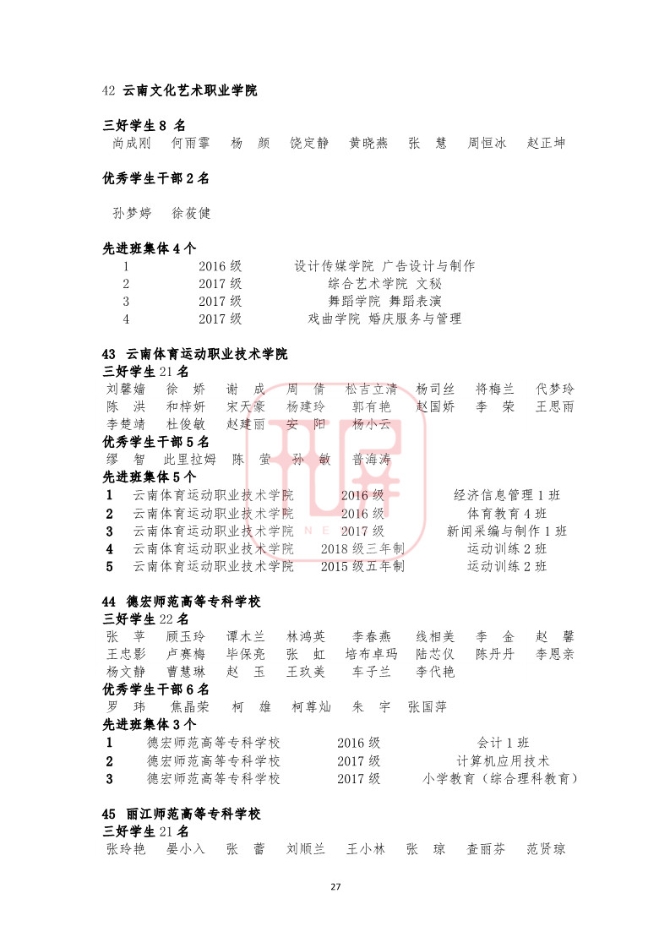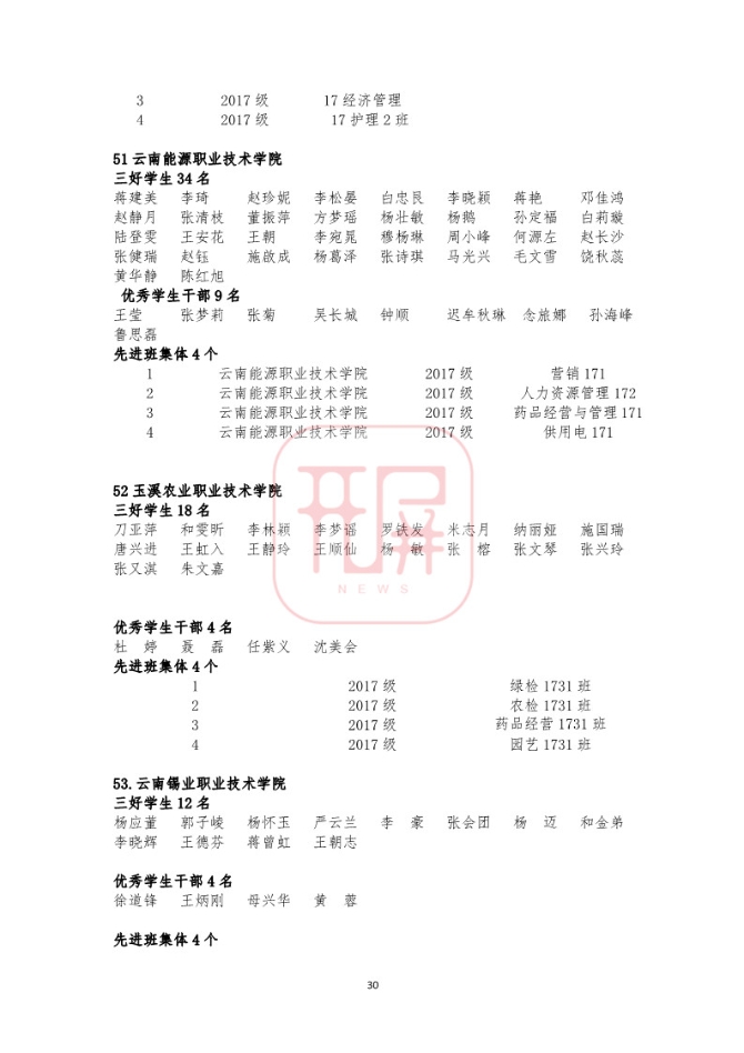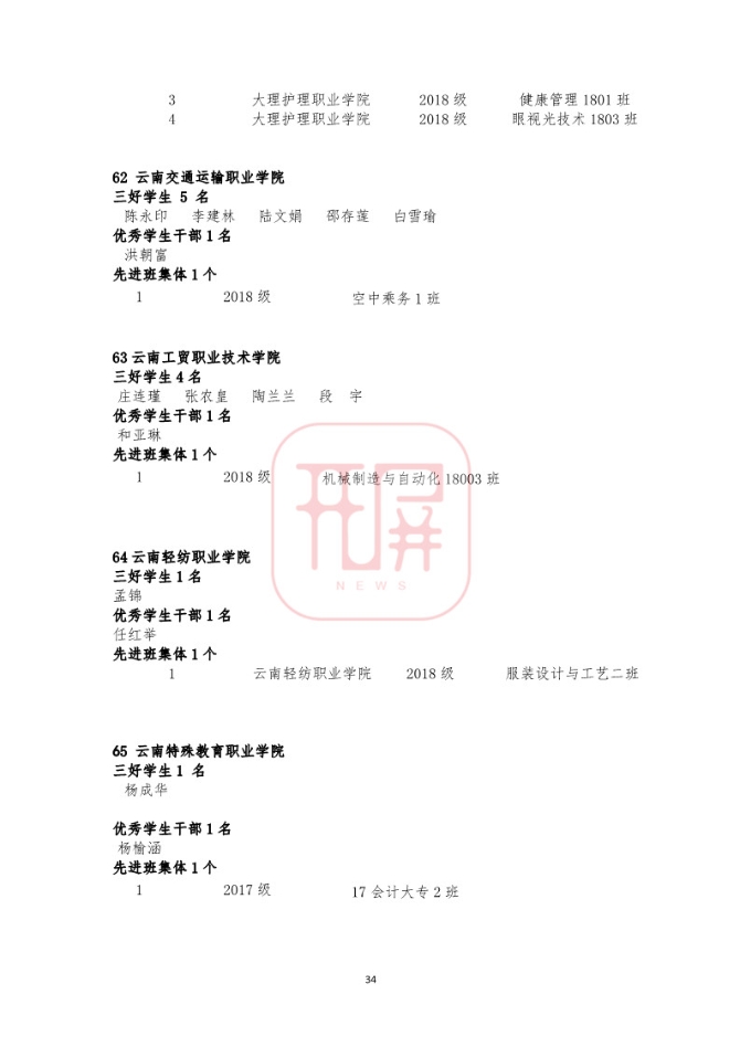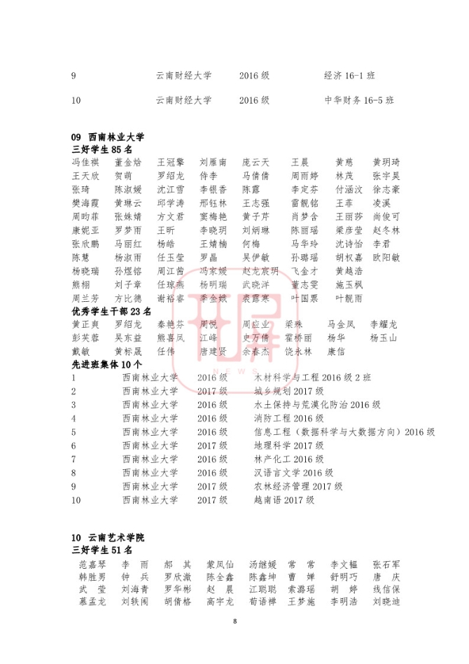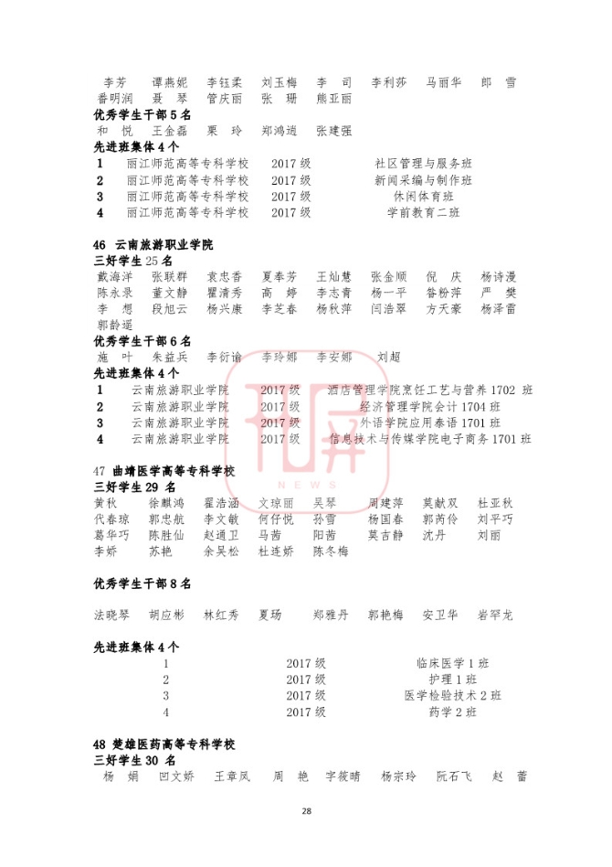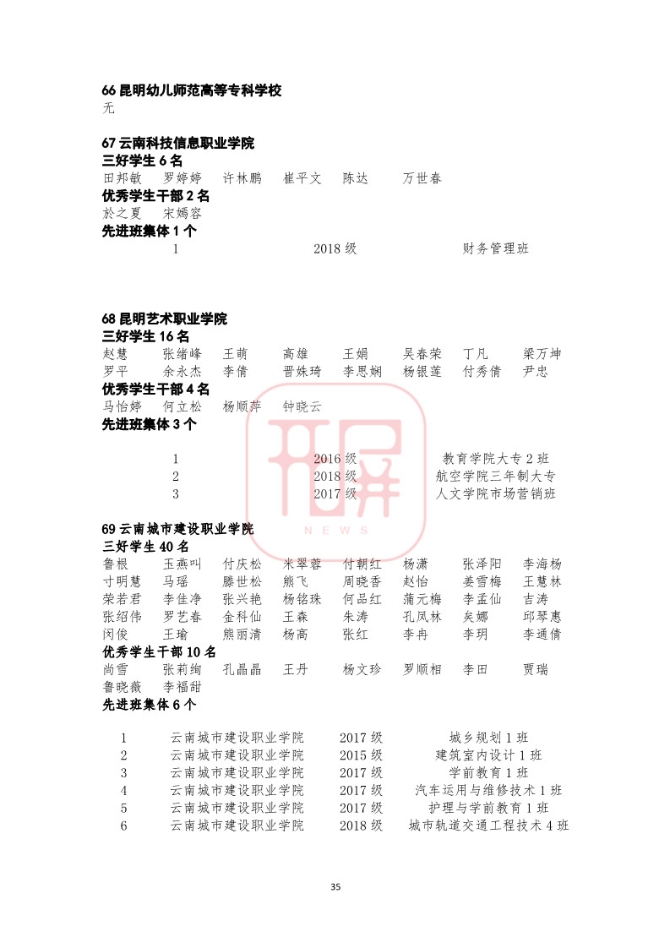 中共云南省委高校工委日前发布《关于2018~2019学年省级三好学生优秀学生干部和先进班集体名单的公示》,我省各所高校又有一批学生和班级榜上有名。