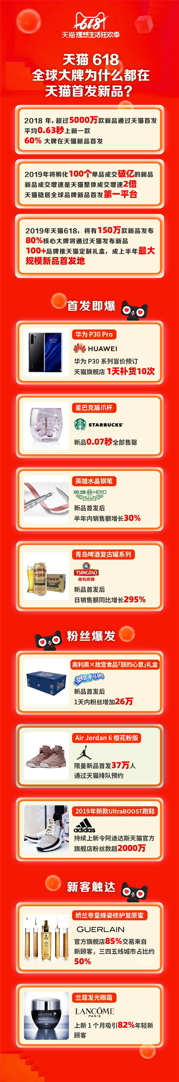 今年4月,天猫宣布2019年将首发超5000万款新品,并将手机淘宝首页天猫入口升级为“天猫新品”。“新品”也成为今年天猫618的关键词:消费者耳熟能详的核心品牌中,有80%都将在天猫618发布新品。