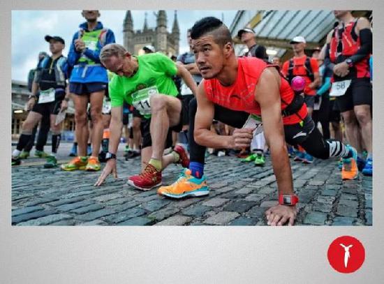 有一次有人告诉我,国外有一种极限马拉松,跑更长的距离。我就义无反顾地去了法国环勃朗峰106公里耐力赛。当时可以说有点困难,因为我是小学毕业的,13岁就下海,文字方面很差。所以,同事给我写了中英文的便条,我就靠着小纸条走遍了天下,但难度可想而知。