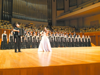 今年,国家大剧院精心策划了以“唱响70年·京津冀三地学生音乐会”为主题的青少年普及音乐会系列活动,邀请三地10余所大中小学校参与其中,通过艺术的展示交流学习,传承弘扬中华民族优秀传统文化。现场,南开大学学生合唱团带来了合唱与表演《盛世梨园情》《花木兰》、混声合唱《沂蒙山歌》《雪域向往》、女生合唱《九儿》《维托》、男声合唱《一束紫罗兰》等曲目。其中,《花木兰》融合了戏曲唱腔和诗词元素,展现了中华传统文化的风采。