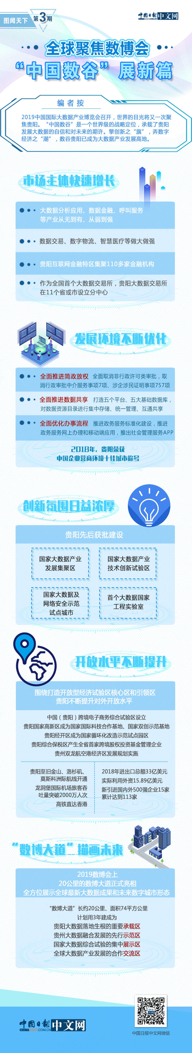 2019中国国际大数据产业博览会召开,世界的目光将又一次聚焦贵阳。“中国数谷”是一个世界级的战略定位,承载了贵阳发展大数据的自信和对未来的期许。擎创新之“旗”,弄数字经济之“潮”,数谷贵阳已成为大数据产业发展高地。