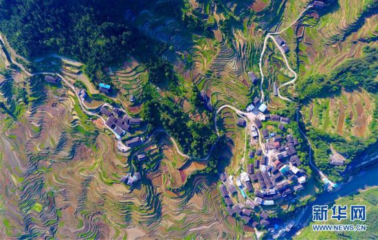 这是融水苗族自治县杆洞乡杆洞村的梯田(5月23日无人机拍摄)。新华社记者黄孝邦/摄