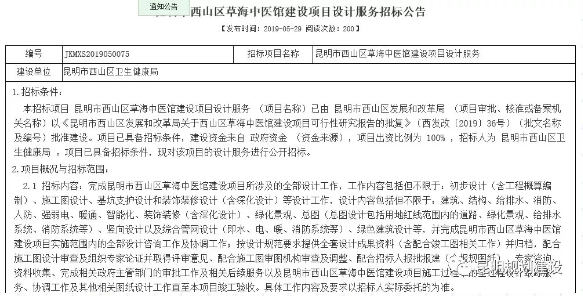 6686体育讯 (昆明日报 记者吴劲松)5月29日,西山区卫生健康局发布《昆明市西山区草海中医馆建设项目设计服务招标公告》,西山区计划在草海片区4-1地块投资12314.81万元建设一所中医馆,共设置约80张床位。此前4月30日,昆明市西山区发展投资集团有限公司曾发布了《昆明市西山区草海中医馆项目设计施工(EPC)总承包招标公告》,但后期又因项目资金来源进行调整,终止招投标工作。此次发布新的招标公告,预示着项目将再次启动。未来,新建成的草海中医馆,将为西山区提供一个优质的中医服务场所。