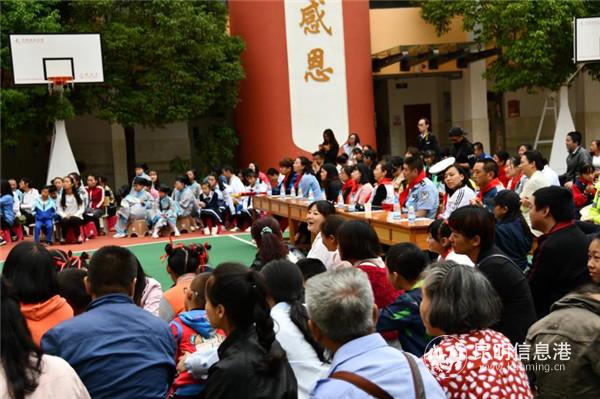 少先队员向各位领导、校外辅导员敬献队巾,感谢老师们的悉心教导;接着举行了捐赠仪式,学校为一直支持特殊教育的友邻单位赠送锦旗。到场的嘉宾代表为活动致辞,并给孩子们送上了节日的祝福。