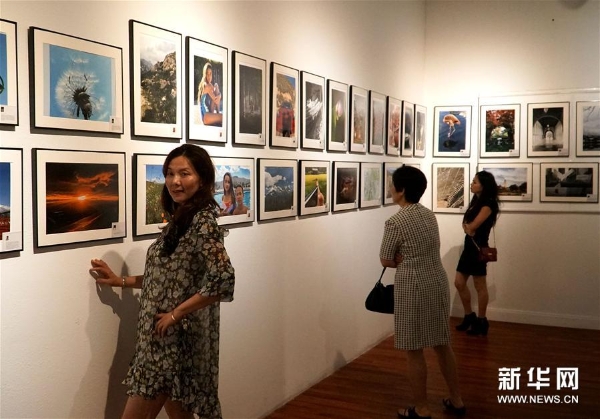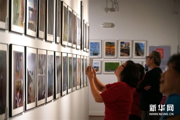 6月1日,观众在摄影展上欣赏图片。(新华社记者 吴晓凌 摄)