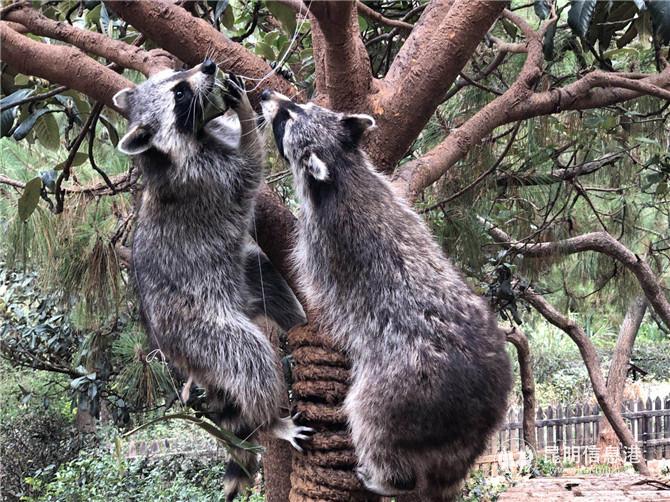 在浣熊家族展区,工作人员为它们准备了甜、咸两种口味的粽子。甜粽子馅料主要是香蕉和苹果,咸粽子馅料主要由杂粮窝窝头组成。只见笼舍门刚打开,小浣熊们便一股脑争抢起粽子来。它们“手”里捧着一个个粽子,嘴巴一口就灵活地将粽子咬开,粽子的苹果馅露出,混合着新鲜粽叶的清香,小浣熊美滋滋地吃了起来。而有些浣熊则爬到树上享用美味,最终将粽子吃个精光。