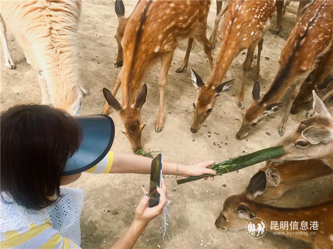 在长颈鹿庄园,长颈鹿特别钟爱胡萝卜馅的粽子,粽子一度供不应求。“哇!长颈鹿也吃粽子啊?”一名前来动物园游玩的小女孩将手里的粽子喂进长颈鹿嘴里,看到长颈鹿将整个胡萝卜粽子都“吞”了进去,小女孩特开心。而在梅花鹿散养区,梅花鹿家族和羊驼家族正在享用青草粽。