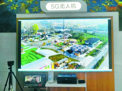 在世园会移动5G展厅中体验空中世园景观。