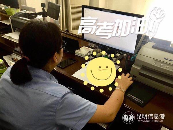 一场户籍证明材料的接力迅速开始:高考服务点民警与派出所户籍室工作人员取得联系后,户籍室工作人员立即将该考生的户口证明打印出来后火速送到高考服务点,高考服务点民警又将证明材料送到考生手中。