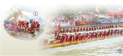 最热闹的要数龙舟景——各兄弟村、老表村、友好村划着龙舟轮番上门做客,好一场节日盛典。各村按照约定俗成的日期发出邀请叫“招景”,接受邀请欣然赴约叫“趁景”。