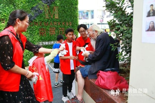 美人之美,美美与共。昆明之美把流浪者当亲人,自2010年起,为流浪者春节发红包,端午节发粽子,中秋节发月饼,冬天发棉衣棉被,志愿者被受助者称为“昆明美人!”