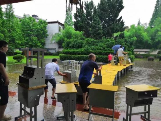 江西上饶暴雨考点被淹,老师用课桌为考生搭起“爱心桥”