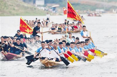 6月6日,江西省上饶市万年县梓埠镇举行赛龙舟迎端午活动,吸引群众踊跃参与。