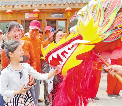 6月7日,游客在河北省秦皇岛市海港区石门寨镇老君顶景区观看民俗演出。当日,许多游客到景区欣赏舞龙舞狮、体验包粽子、观看赛龙舟,感受传统文化魅力。