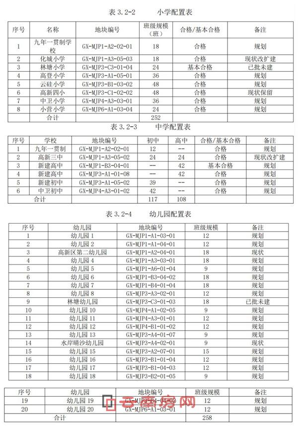 呈贡高新区教育规划配套表(数据源于2018年高新东区控详规)