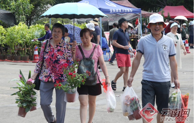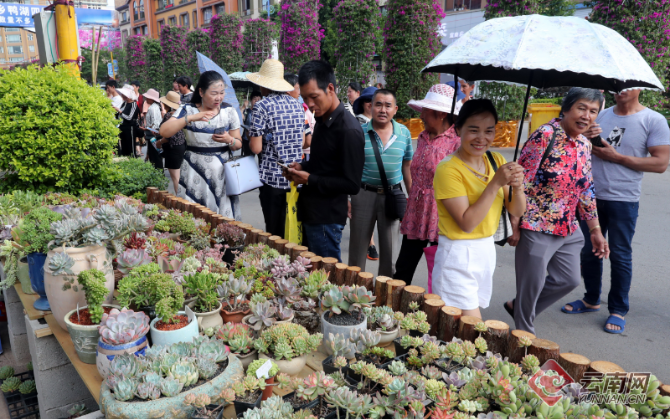 端午假期,中国昆明国际观赏苗木展览会暨2019宜良花街节热闹异常,琳琅满目的花卉、苗木、盆景、盆器等园艺产品吸引众多游人前来观花购花,感受宜良县 “中国花卉苗木之城”的魅力。
