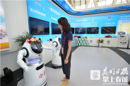 6686体育讯 (昆明日报 全媒体记者李思凡) “小云,今天石林的天气怎么样?”“石林中雨,中级风,小心迷伤眼镜。预计气温19至27摄氏度,此刻25摄氏度。空气质量超赞,心旷神怡啊!怕你淋湿,记得带伞。”在本届商洽会5G展示区,“游云南”App人工智能机器人“小云”“小南”从线上来到线下,吸引观展者与它们互动。