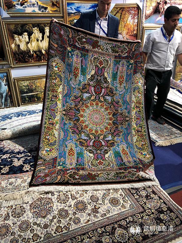“你们猜猜这地毯边上的丝绸来自哪里?”在9号南亚馆的另一隅,伊朗的地毯商Mostafa手持一块地毯,说着流利的中文与展区前的顾客互动了起来。他解释称:“就是用中国的丝,波斯地毯编织工艺中引入丝绸就是中国古代丝绸之路的硕果。”