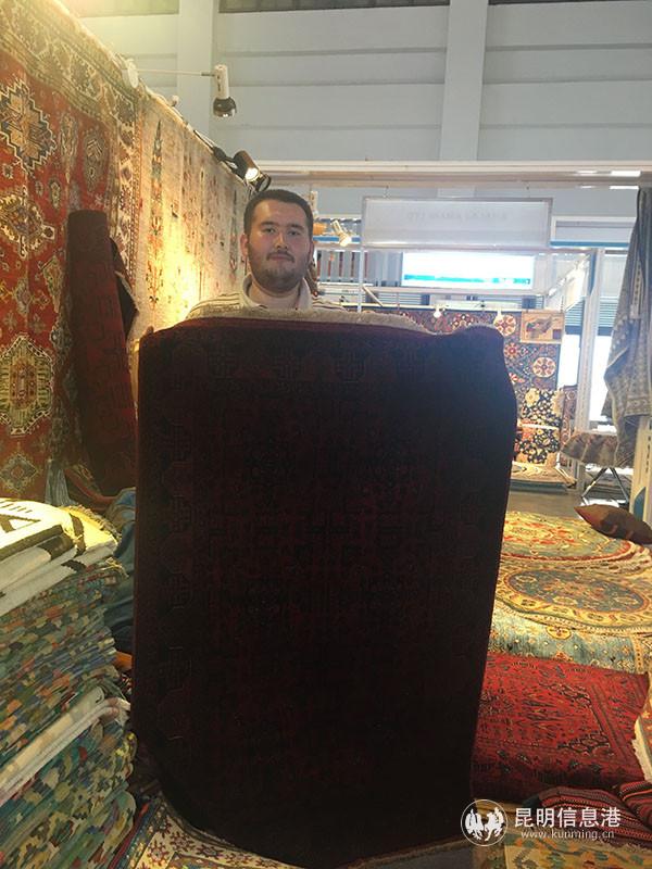 阿富汗参展商Basir Amani展示此次参展的佳品Biljik Khalmahmadi地毯。记者谭石艳/摄