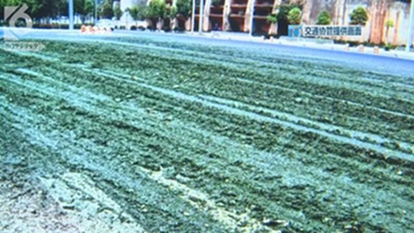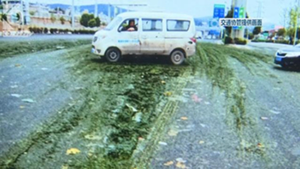 6月16日早上9点左右,有昆明市民经过呈黄路阿拉收费站附近时发现,近两公里的路面被一些烂菜叶污染,这是谁干的呢?