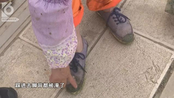 环卫工人 赵阿姨:“我们来的时候这里被碾压的黑漆漆的一大片,脚上已经都湿了,你看我们这一身,踩进去脚背都被淹了,有这么厚,我们铲的那时候。”
