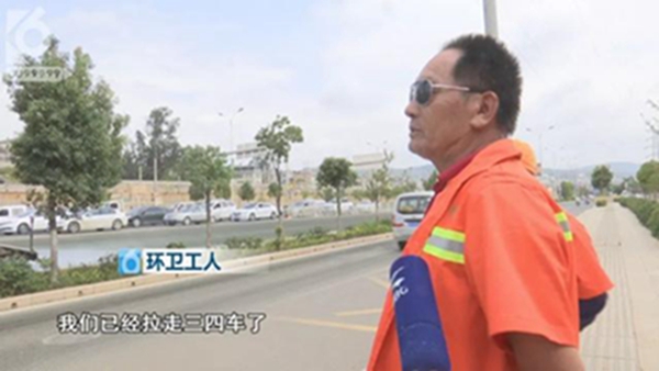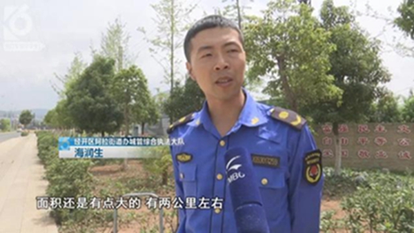 经开区阿拉街道办城管综合执法大队 海润生:“按照相关昆明市市容市貌的规定,对车辆进行处罚,面积还是有点大的,有两公里左右,陆陆续续的,断断续续的。”