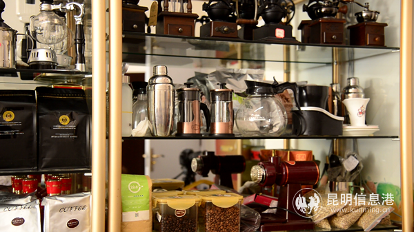 穿过一座饭堂,一扇低调的门面,仿佛一不留神就会错过。与想象中的样子相比,似乎不大一样。一进门,是一个十几平米的小房间,一张方桌围着四五张凳子,迎面货架上是各式摆放整齐的咖啡器具,除此之外,再无更多空间了。
