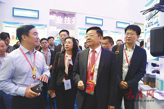 韩立华、何忠华分别来到大庆展区,询问了解企业参展情况,为大庆交易团鼓劲助威。大庆日报记者 孙娜 摄
