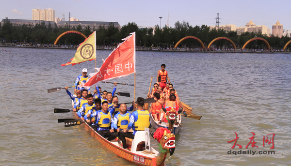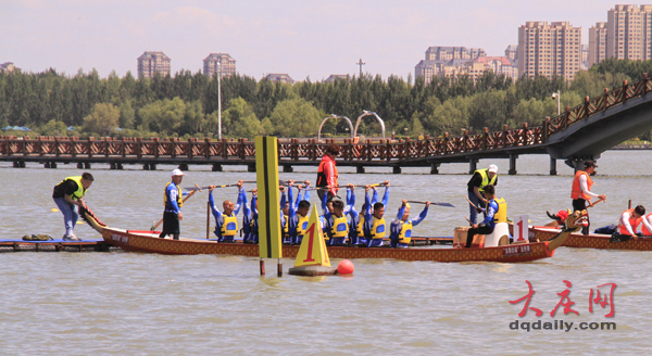 6月16日,黎明湖码头阳光明媚、旌旗飘扬。由大庆市政府主办,市委宣传部、市总工会、市文化广电和旅游局、市体育局承办的“龙腾百湖”2019年中国·大庆第八届龙舟邀请赛在黎明湖上激情开桨。“千帆”竞渡,“百舸”争流,万余市民到场观战。