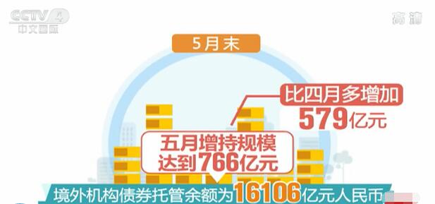 中国中央国债登记结算公司最新公布的数据显示,5月末,境外机构债券托管余额16106亿元人民币,5月增持规模达到766亿元,比4月多增加579亿元,连续6个月增持,并创年内单月最大增持规模。