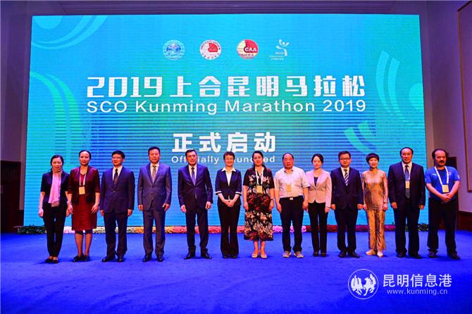 会上,上海合作组织秘书长诺罗夫、云南省副省长李玛琳、中国田径协会副秘书长水涛、国家广播电视总局规划院党委书记万顺府、云南省副秘书长彭耀民、省外办副主任杨沐、省体育局副局长吴亚敏、昆明市副市长胡宝国共同启动了本次赛事。随后,诺罗夫向胡宝国授予了上合昆明马拉松会旗。