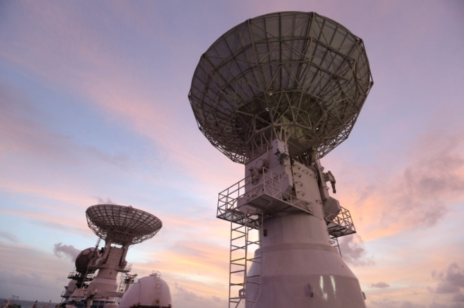6月25日拍摄的远望3号船海上测控的雷达天线。