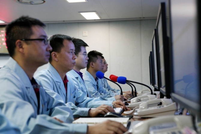 6月25日,远望3号船控制中心工作人员对第46颗北斗导航卫星进行海上测控。