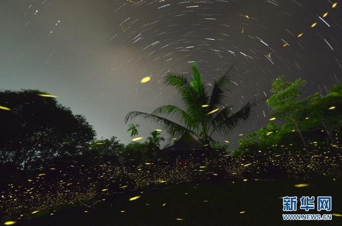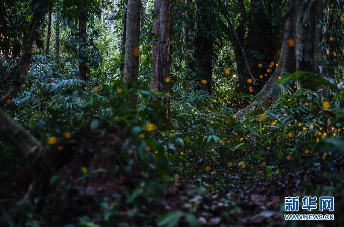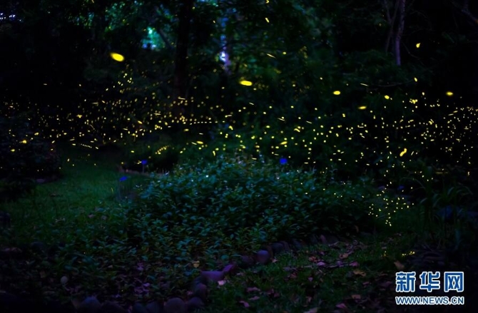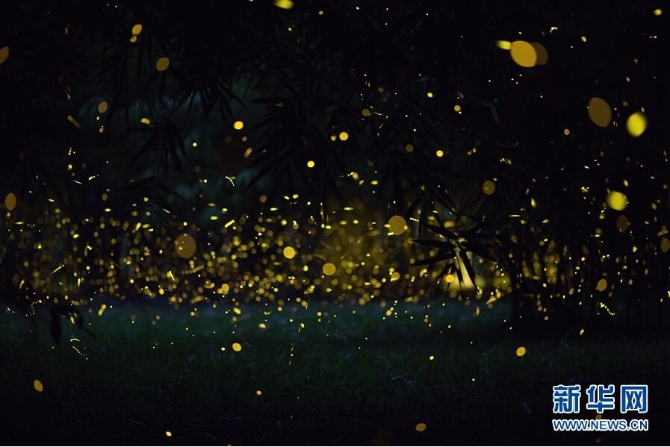 西双版纳热带植物园中,流萤飞舞,宛若星河。园区工作人员介绍,萤火虫是对鞘翅目萤科昆虫的通称,全世界的萤火虫大约有两千种,它们生活在温带和热带的潮湿环境中,活动范围一般不会离开水源。