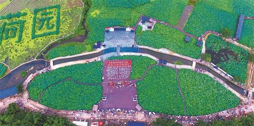 6月21日,第八届柳江荷花文化旅游节在柳州市柳江区百朋镇下伦荷花景区举行。本届荷花节以“藕遇荷海 乡约柳江”为主题,宣传推广“百朋玉藕”和万亩荷田旅游品牌,推进全域旅游发展。(记者张子潇)