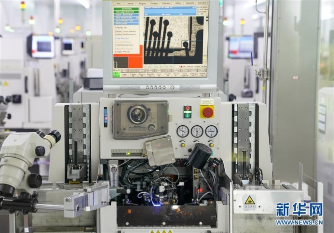 重庆万国半导体科技有限公司芯片封装车间内的自动化封装设备在进行生产(6月21日摄)。新华社记者 刘潺 摄