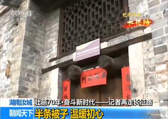 中央广播电视总台央视记者 劳春燕:走在沙洲村,我们看到的是一排排整齐漂亮的湘南新民居,一下子好像很难与80多年前的峥嵘岁月联系起来,不过在这些新房子的后面,村子里的老房子都还完好地保存着,这个门里面就是当年红军总卫生部的旧址,这老房子一看就有年头了,他们告诉我说这老房子已经有300年历史了,而和这个卫生部仅仅隔着一条巷子的,就是村民徐解秀家,现在根据半条被子改编的电影正在这里拍摄。